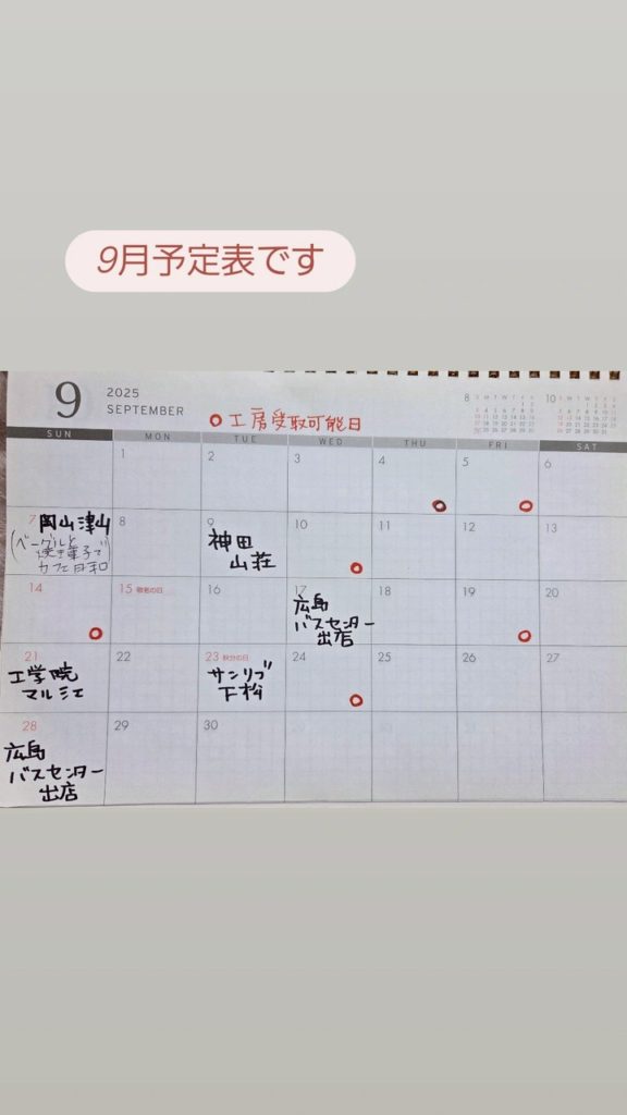 工房引取り可能日は、カレンダーのせますのでご覧ください。